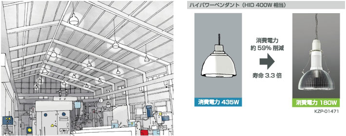HID400Wと比べて約3.3倍の寿命、約59%の消費電力削減。